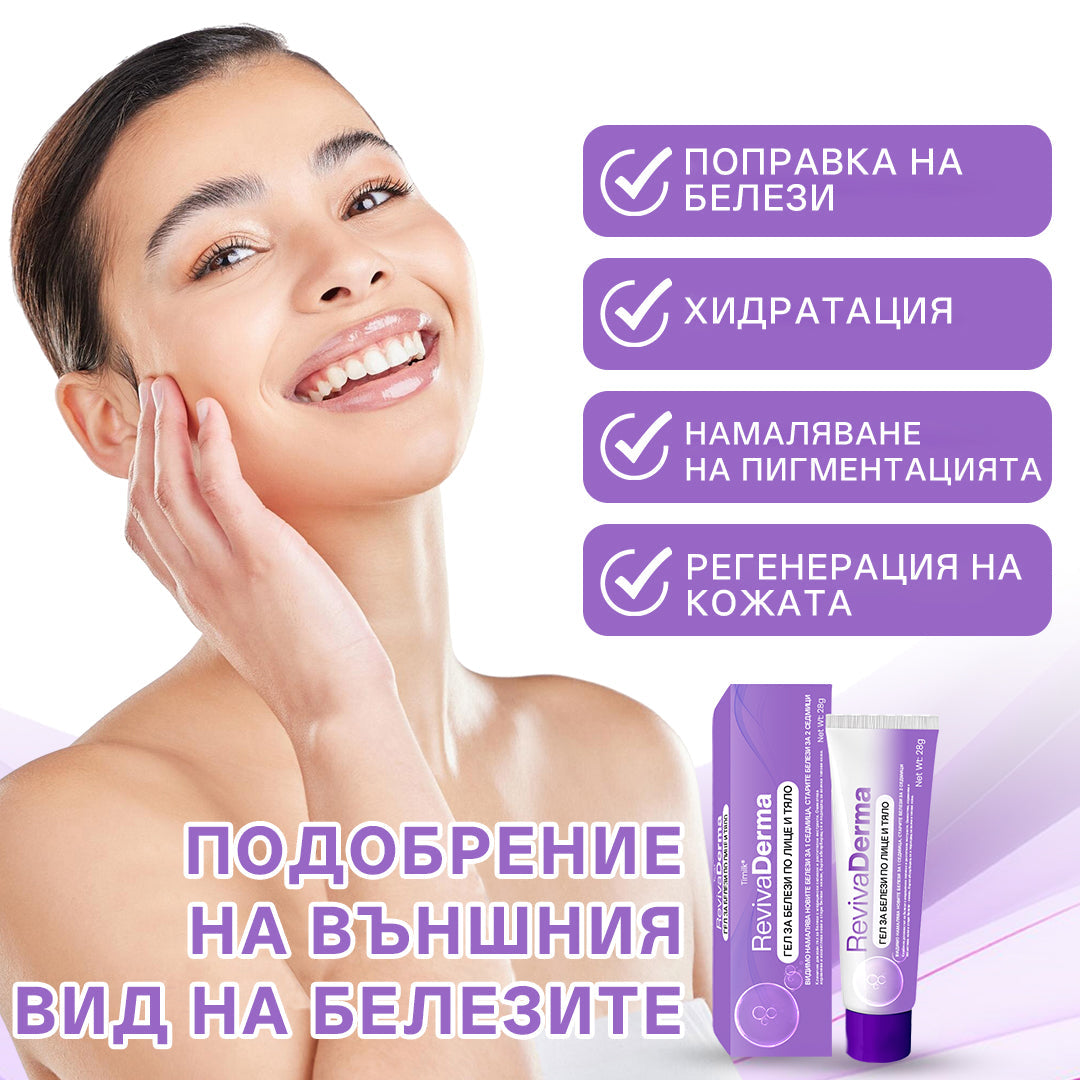 Гел за белези от лице и тяло RevivaDerma - Клинично доказано омекотява, изравнява и избледнява хирургически белези, белези от акне, изгаряния, келоиди и белези, свързани с травми. 🛒